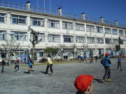 6年生と先生たちが鬼です。思い切り走ると気持ちいいです。