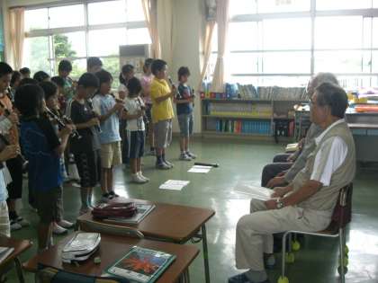 お話を聴いた後は、子どもたちからお礼の歌や合奏を贈り、感謝の気持ちを直接伝えられることができました。