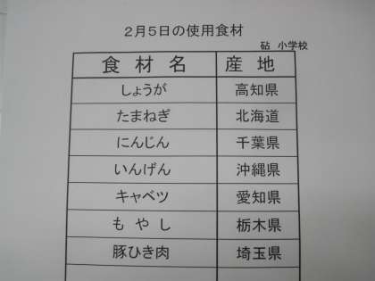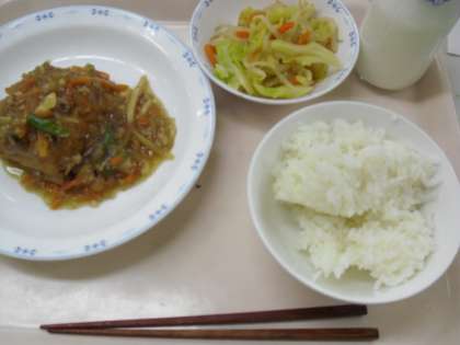 2月5日(火)今日の給食 ごはん 生揚げそぼろあんかけ 野菜のからししょうゆかけ
