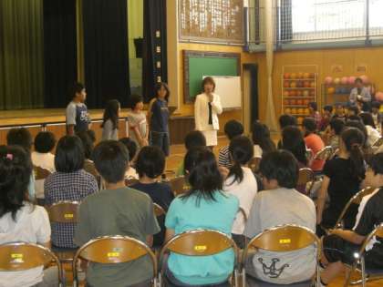 6月は環境月間です。学校エコライフ活動の一環として、環境ミニライブを開催しました。ソプラノ歌手の雨谷麻世さんとひのきしんじさんが来校して、地球環境と森の大切さのお話と「僕にできること」の歌のプレゼントをしていただきました。5,6年の子どもたちと保護者とともに環境について考えるすばらい時間を共有することができました。