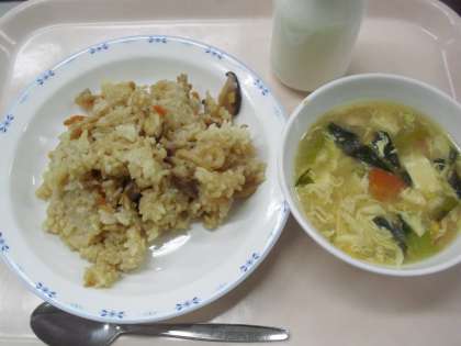 2月18日(月)今日の給食 中華おこわ 中華風コーンスープ 牛乳