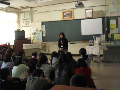 4、5、6年生が「金の魚」、「注文の多い料理店」、「しんせつな地主さん」などのお話を素話で聞きました。