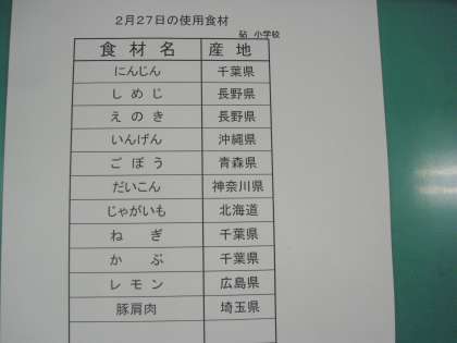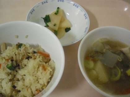 2月27日(水)今日の給食 きのこご飯 豚汁 かぶのレモン醤油かけ 牛乳