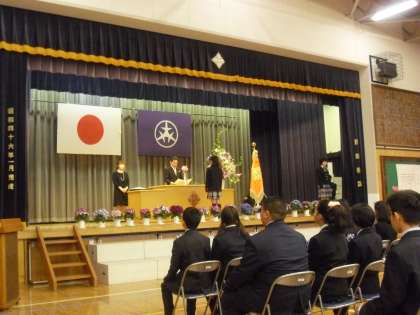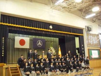 4、5年生に見送られて45人の卒業生がりっぱに巣立ちました。