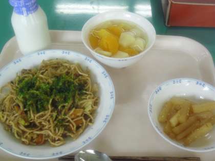 ソース焼きそば 牛乳 大根の中華風 フルーツ白玉