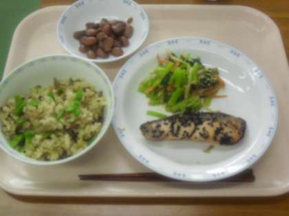 ひじきごはん    牛乳   魚の南部焼き   ごまあえ   煮豆