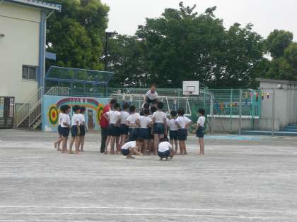 毎日運動会の練習をがんばっている5年生。力を合わせて大きな技の仕上げも進んでいます。運動会が終われば、幼稚園の年長さんとの田植えもあります。顔合わせの「はじめましての会」では、ほほえましいお兄さんお姉さんぶりを発揮していました。