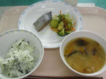 わかめごはん 牛乳 魚の照り焼き 野菜のしょうが風味 みそ汁