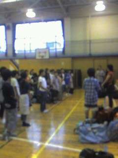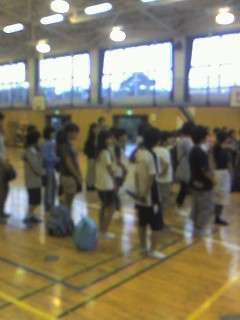 小雨のため出発式は体育館で行いました。保護者の方々や先生方の見送りを受け、元気に出発しました。