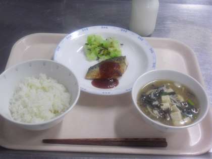 ごはん 牛乳 もずく入りみそ汁 魚のケチャップソースかけ