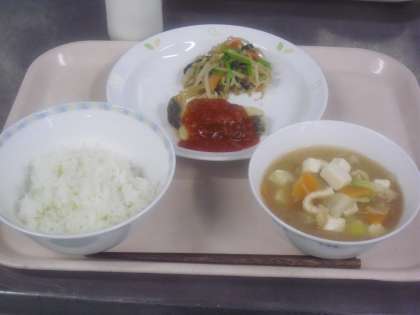 ごはん 牛乳 魚のチリソース おひたし みそ汁