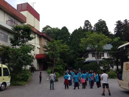 係りの人から、昨日の反省と今日の目標を聞きました。昨日の東照宮でのマナーの良さや集合の良さ、グループ行動の良さを活かして、今日も一日、日光を皆で楽しみます。