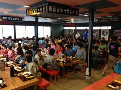 昼食は、カレーライスとバナナ。とっても美味しかったです。これから浴衣を脱いで、現代に戻ります。それからバスで学校を目指します。