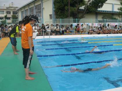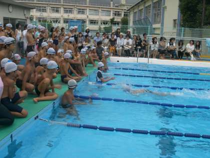 水泳記録会では5・6年生の素敵な姿をたくさん見ることができました。自分の目標を持って最後まであきらめず一生懸命泳ぐ姿。友達のがんばりに、精いっぱい応援する温かい周りの友達の姿。一人ひとりのがんばりと、周りの友達の応援でさらに素敵な、クラス、学年となり、砧小学校の高学年としてこれからも活躍してくれることでしょう。たくさんの保護者の皆さまのご声援も子どもたちの力となりました。ありがとうございました。