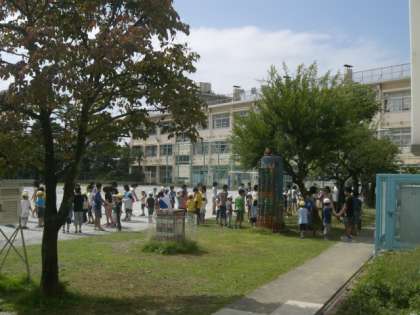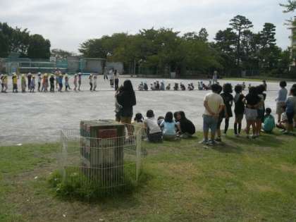 砧幼稚園の星組さんが、小学校の校庭で運動会の練習をしました。星組さんと1年間交流をしている5年生が、応援に駆け付け大きな声援をかけていました。練習の後、短い時間でしたが交流をしました。