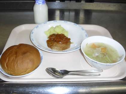 黒砂糖パン   牛乳   魚のハンバーグマッシュルームソース