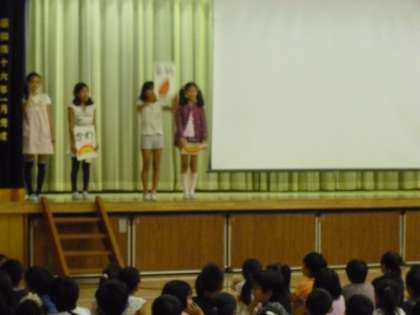 10月11日(金)児童集会で保健委員会が発表を行いました。