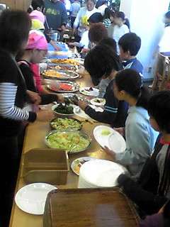 清々しい秋晴れの朝です。朝会終了後、最後の班長会で最終確認をしてからバイキング朝食をいただきました。