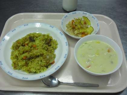 ツナピラフ   牛乳   クリームスープ   野菜チップス