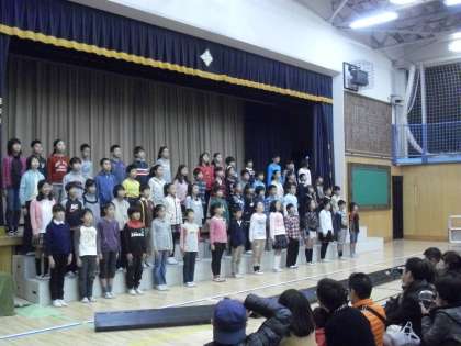 演目は4年生「寿限無」5年生「伝えよう私たちの思い」