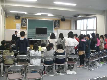 6年生が、砧南中学校の学校説明会に行きました。最初に、前もって希望した授業を受けました。緊張の中でしたが、みんな楽しそうでした。