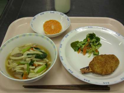けんちんうどん 牛乳 五平もち わかめサラダ