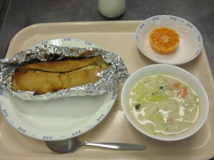 ホットツナサンド 牛乳 白菜のクリームスープ
