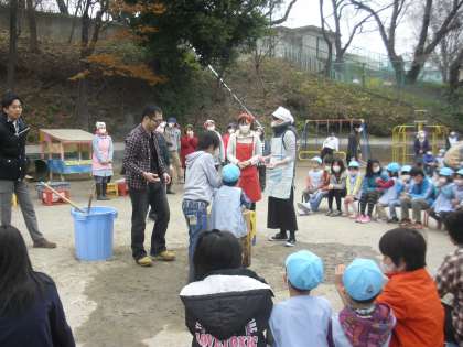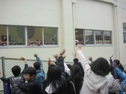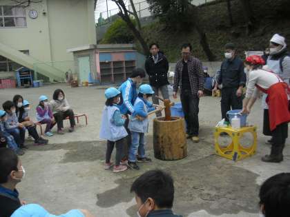 今日は砧幼稚園の園庭で、「もちつき大会」があり、星組さんと5年生による交流の時間がありました。5年生を慕ってくれる園児がかわいいのはもちろん、それに優しく応える5年生のかわいい様子をたくさん見ることができました。お別れの時には、泣き出してしまう園児もいたくらい、別れを惜しんで、いつまでも窓から手を振って見送ってもらいました。今にも雪が降り出しそうな寒い中、心はほっと温かくなる「もちつき大会」でした。