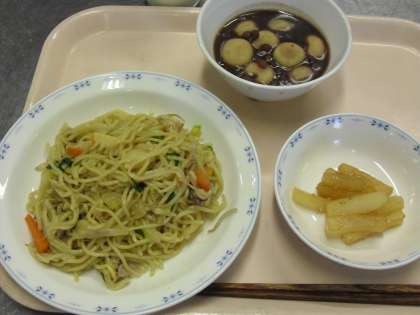 塩焼きそば 牛乳 大根の中華風 白玉しるこ