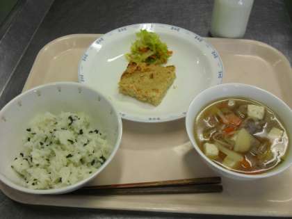 わかめごはん 牛乳 松風焼き 野菜のしょうが風味