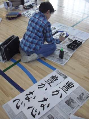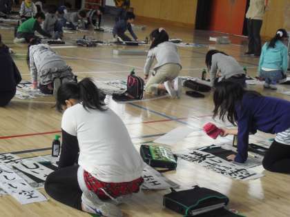 今日は1・2時間目に4年生、5・6時間目に5年生の書き初めがありました。