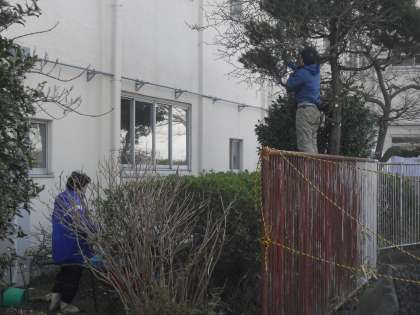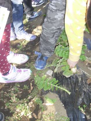 今日は3年生が大根の収穫をしました。「大きい大根だから記念撮影してください。」「3つに分かれている面白い大根だから、写真撮ってください。」と、カメラに向かって大根を見せてくれる子供たちでした。畑の横では主事さんが、木の剪定をしています。若芽が出てきてから枝を剪定すると、生長にいいのだそうです。明るく、風通しもよくなり、ますます子どもたちが畑で活動しやすいようになりました。