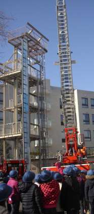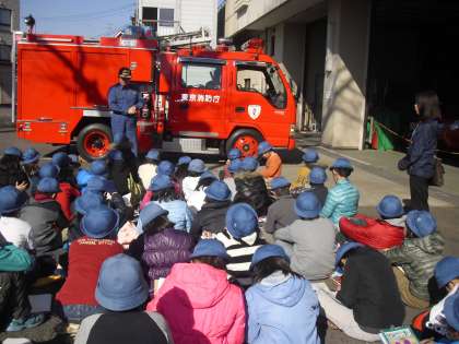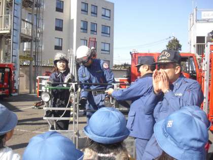 社会科の学習で、3年生が成城消防署見学に行きました。世田谷の救急・消防のお話をうかがったり、消防車の中に座らせていただき、貴重な機器を間近に見せていただいたりしました。担任の先生がはしご車に乗る体験も!30メートルもの高さにあげていただき、高所での消防活動がどれだけ大変かがよくわかり、勉強になることばかりだったようです。