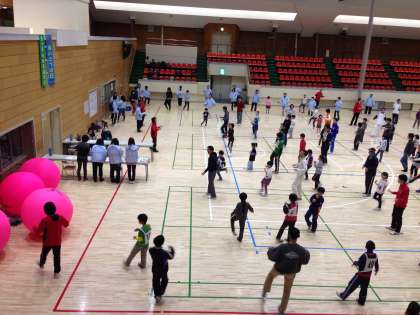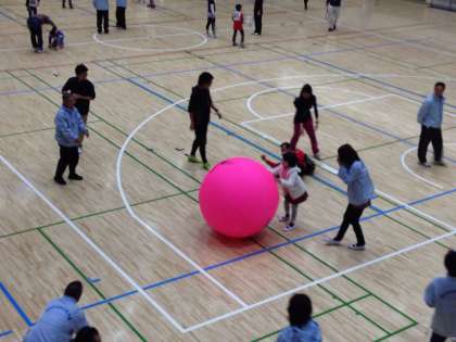 昨日は、青少年砧地区委員会主催「親子でボールと遊ぼう!」が、砧総合運動場体育館でありました。砧小学校からも、ショートテニスに12名、キンボールに22名の親子の参加がありました。近隣の小学校からの参加もあり総勢200人以上の方々の参加でした。楽しいボール遊びを通して、参加者同士・地域の方々との交流が深まり、良いひと時が過ごせました。