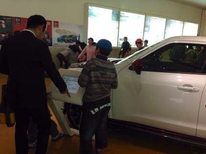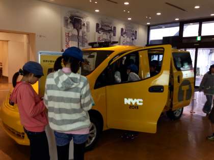 5年生が社会科見学で、追浜日産自動車工場に来ています。教科書の写真で見た工場の中の様子を実際に見てきました。これから、お弁当を食べて、森永製菓工場に行きます。