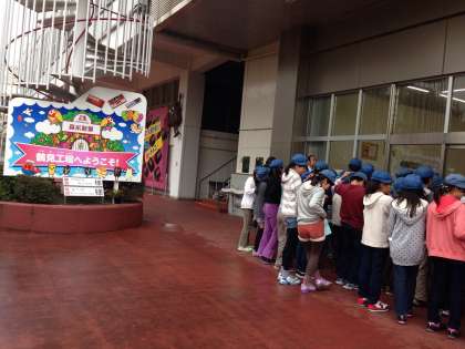 森永製菓工場の中の様子は撮影禁止でしたので、ご紹介できないのが残念です。できたてのお菓子を試食させていただきながら、いい匂いの工場の中たくさん勉強できました。これから学校に向かいます。