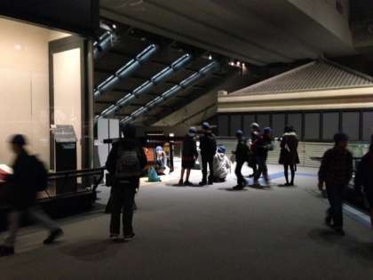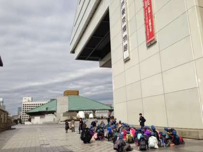 江戸東京博物館に着きました。マナーを守って見学してます。