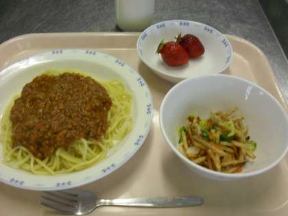 スパゲティーミートソース 牛乳 じゃがいものハニーサラダ