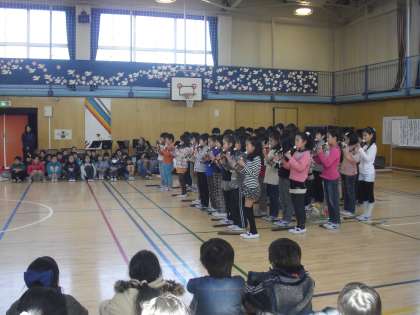 今日は6年生を送る会・お別れ給食・セレモニーでした。テーマは「ありがとう」。砧小学校をリードしてくれた6年生に、各学年から「ありがとう」の気持ちがたくさん詰まった出し物をプレゼントしました。名場面の写真をご紹介します。どんな様子だったか、ぜひご家庭でも聞いてください。