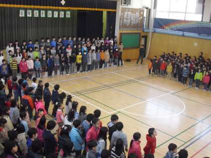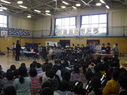 あこがれの6年生をよく見ていたからこそ!6年生の才能を引き出してしまう出し物は、さすが5年生でした。6年生からのお返しのプレゼントの合奏。誰一人しゃべる間もなく、引き込まれてしまう演奏は6年生でなければできません。全員で「ビリーブ」を合唱。体育館で全校集まるのも、もうあと何回でしょう。