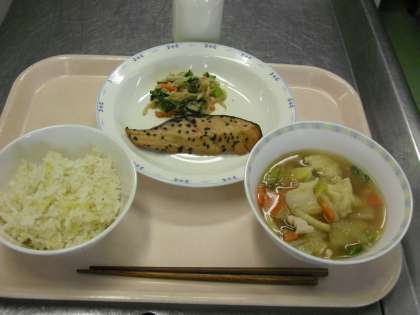 雑穀ごはん 牛乳 魚の南部焼き ごまあえ