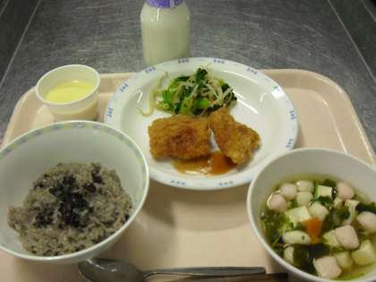 赤飯 牛乳 セレクトフライ おひたし