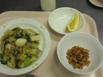中華丼   牛乳   大豆とじゃこの甘辛揚げ   くだもの