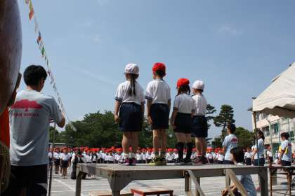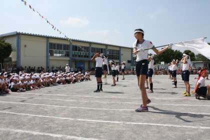 26年度運動会、午前の部が終わりました。1年生の児童代表の言葉も立派でした。応援にも力が入り応援合戦はもちろん競技中も元気な声が飛び交っています。これから午後の部です。6年生による「マーチングバンド2014」からスタートです。