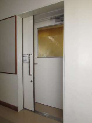 ことばの教室の指導室の出入り口は二重ドアになっています。また、窓も二重サッシになっています。これは、指導時に騒音が聞こえないようにするためです(場合によっては、エアコンや換気扇もOFFにします)。