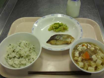 わかめごはん 牛乳 魚の西京焼き ひとしお野菜
