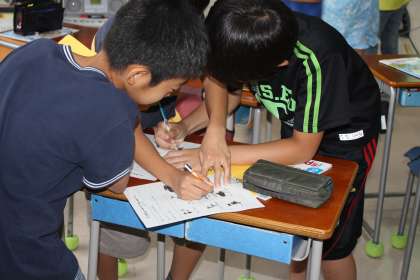 昨日の下校時は、急な雷雨にもかかわらず、多くの保護者の方が外に出てくださり、お見守りいただきましてありがとうございました。今日は、梅雨の合間の変わりやすい天候でした。太陽の観察に校庭に出た3年生は、外に出たとたん、太陽が雲に覆われ残念そうでしたが、20分休みは外で遊ぶことができました。午後は「砧の学び舎合同研修会」でした。2年生の体育、6年生の英語活動の授業を通して、いろいろなことを学ぶことができました。英語活動のアクティビティーでは、参観にいらした中学校の先生にもインタビューをし、学習したフレーズを使って会話を楽しんだり、お互いサインをしあったり、積極的に活動できました。