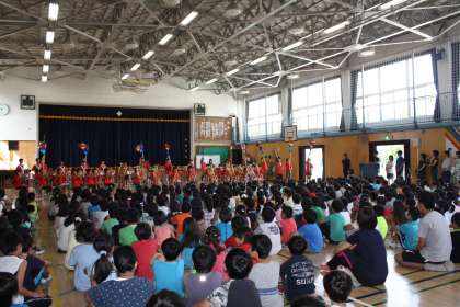 火曜日、音楽朝会がありました。6年生が「砧っ子夏祭り」パレードの曲を演奏し、フラッグの演技とともに全校児童の前で披露しました。たくさんの6年生保護者の方も、応援に来てくださいました。当日は、暑い中、しかも歩きながらの演奏・演技です。たくさんの方に見ていただける最後の舞台ですが、熱中症に気をつけて頑張ってほしいです。お天気が気になります。