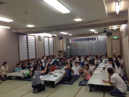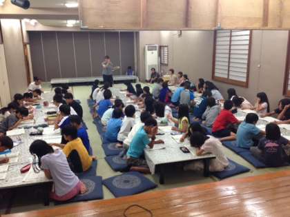 今日一日のまとめの時間。班で話し合ったことを、互いに伝え合います。明日を豊かに過ごすために、皆で力を合わせて、林間学園をよりよく創ります!