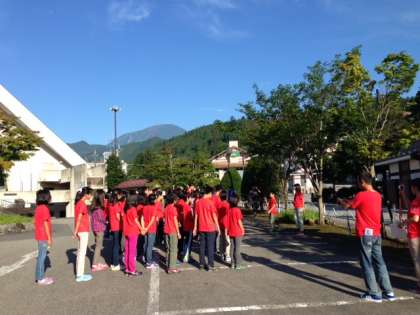 日光林間学園2日目です。全員元気に朝会に参加出来ました。気持ちのいい朝ですが、午後は、雨の予報が出ています。